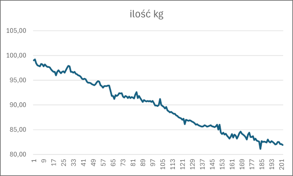 wykres przedstawiający postęp aktualnej wagi w danym czasie (liczba dni)
