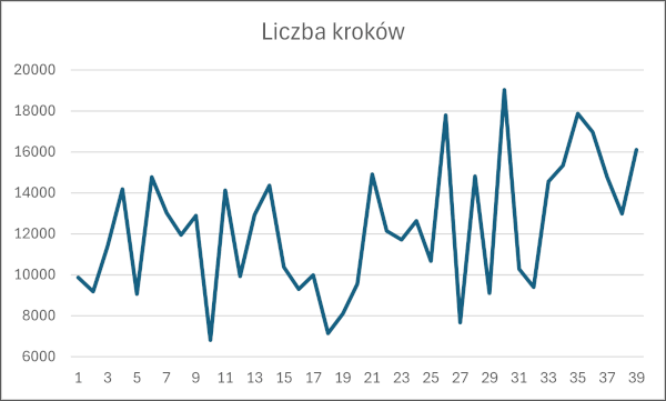 wykres przedstawiający liczbę wykonanych kroków w danym czasie (liczba dni)