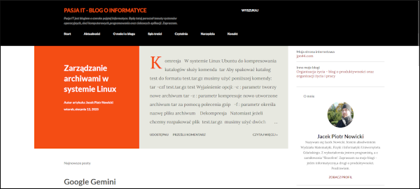 Blog "Pasja IT" jest moim blogiem o szeroko pojętej informatyce. Wykonałem go w serwisie Blogger.